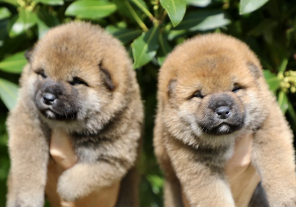 Sur la photo, il y a une mère de chiots et ses deux merveilleux fils