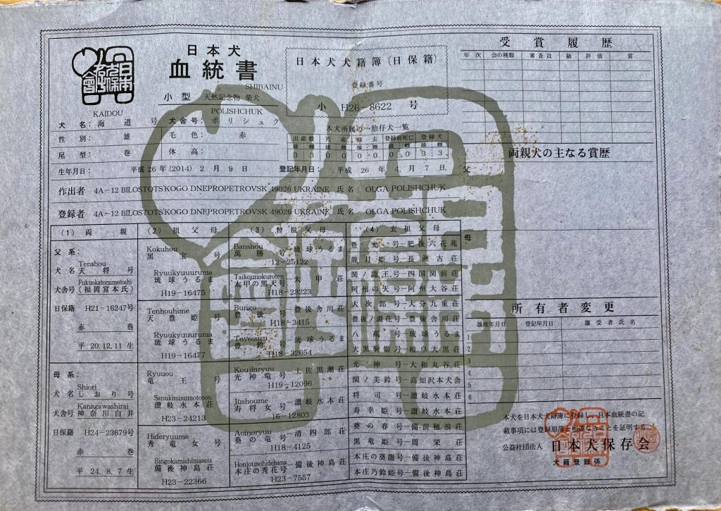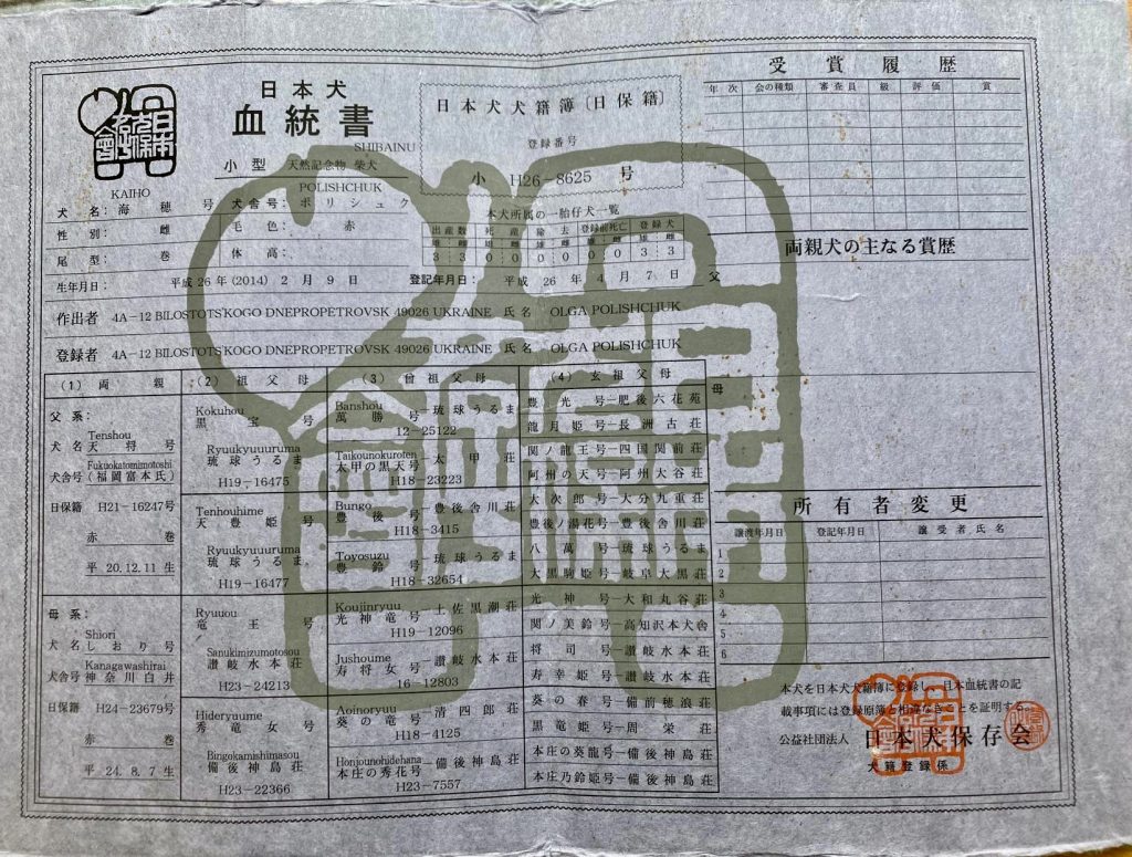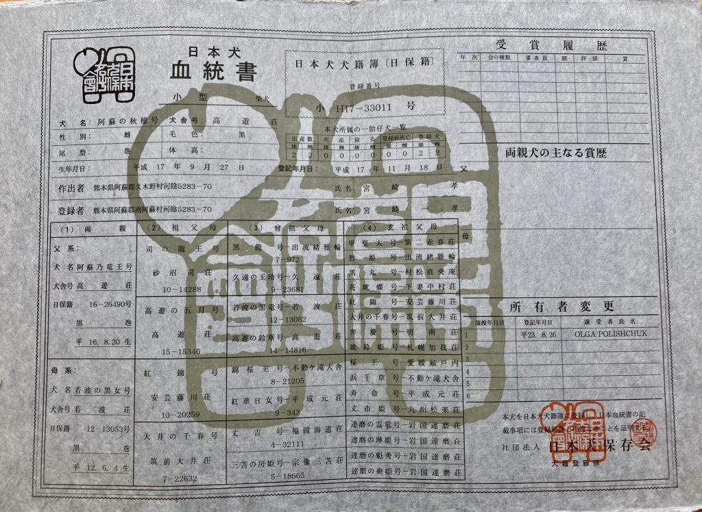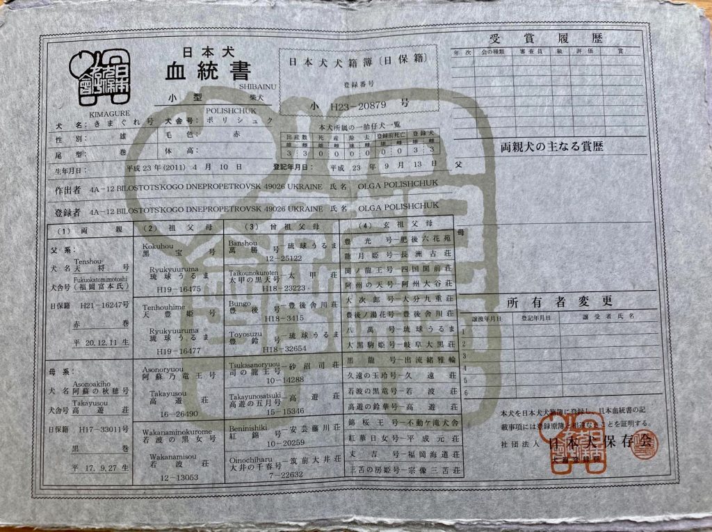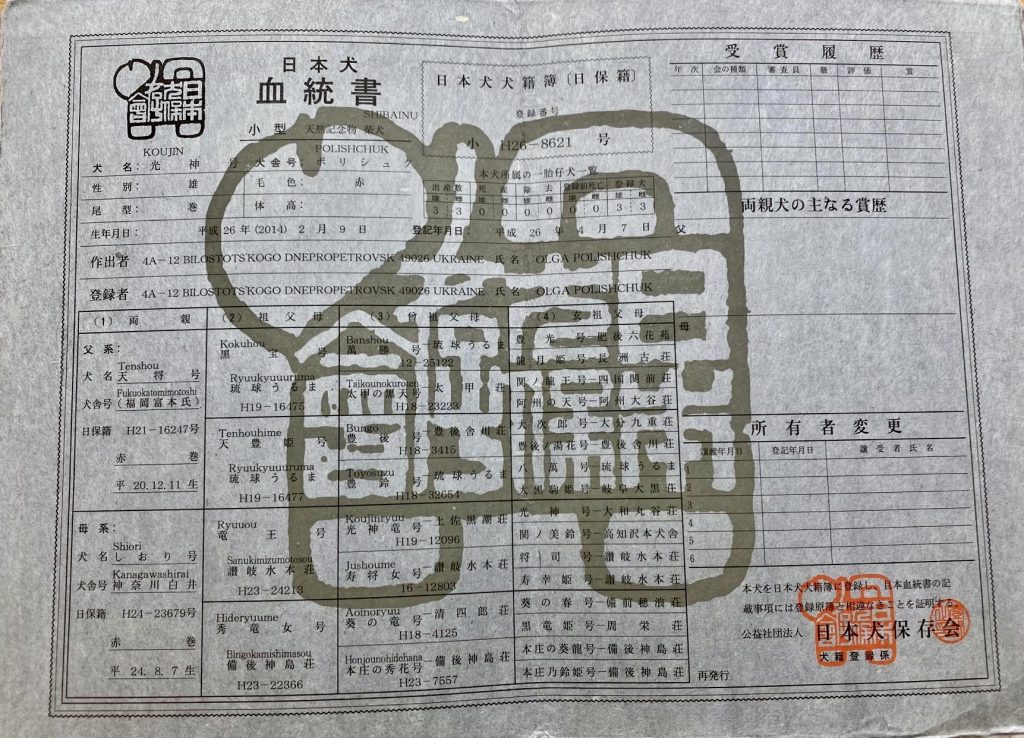 Nous avons une chatterie officiellement enregistrée au Japon depuis plus de 12 ans. Pour la deuxième décennie, nos chiots Shiba Inu ont reçu des pedigrees japonais. Pépinière à Nippo Japon : POLISHCHUK