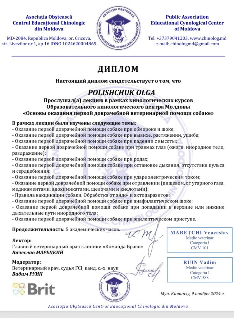 POLISHCHUK OLGA J’ai écouté une conférence dans le cadre d’un cours de dressage de chiens